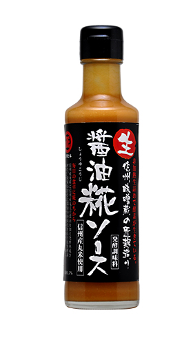 信州味噌蔵の匠麹造り、信州産丸大豆使用した醤油糀ソース。信州産米糀に信州産丸大豆醤油を加え発酵熟成させた、米糀の甘さと醤油の旨味生きる万能発酵調味料です。
