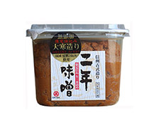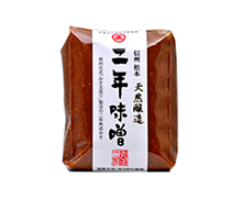 選び抜かれた良質な国産大豆と米、水は味噌造りに最も適した蔵より湧き出る天然水を使用し、蔵元独自の古式製法と自然の微生物の働きによって、じっくり天然蔵で丸二年熟成させた蔵元こだわりの自信作。